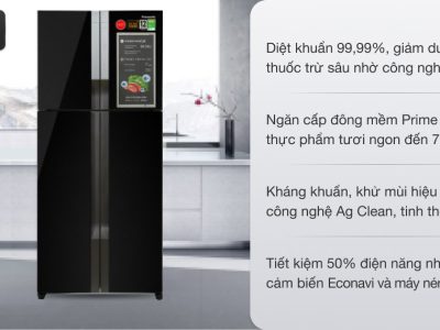 Tủ lạnh Sharp này có thiết kế hiện đại và sở hữu nhiều tính năng như khử khuẩn tốt, tiết kiệm điện, ngăn ngừa nấm mốc, khử mùi hôi, khả năng làm lạnh nhanh. Đây là lựa chọn đáng quan tâm cho gia đình trên 5 người.
