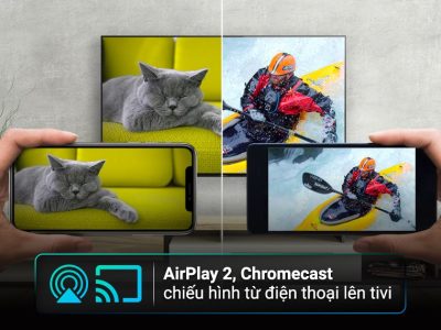– Trình chiếu video, truyền phát nhạc từ điện thoại lên tivi đơn giản với tính năng AirPlay 2 (iPhone) và Chromecast.