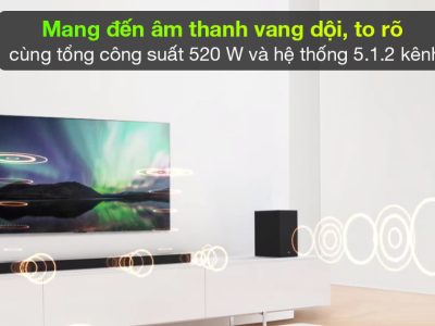 Loa LG với tổng công suất 520 W và hệ thống kênh 5.1.2 kênh mang đến cho bạn những âm thanh vang dội, to rõ mà vẫn sắc nét giúp bạn luôn có thể xem tivi với âm thanh chất lượng nhất.