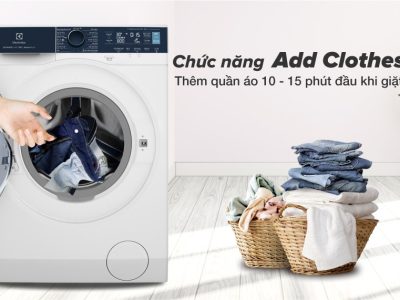 Thêm quần áo trong khi giặt (Add Clothes) được Electrolux thiết kế giúp người dùng có thể cho thêm quần áo vào lồng giặt trong khoảng thời gian 10-15 phút từ khi chu trình giặt bắt đầu. Rất tiện lợi và tiết kiệm thời gian thay vì không cần phải giặt xong mẻ này rồi giặt tiếp mẻ đồ khác.