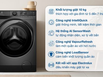 - Khối lượng giặt 10 kg thích hợp với gia đình từ 5 đến 7 thành viên.