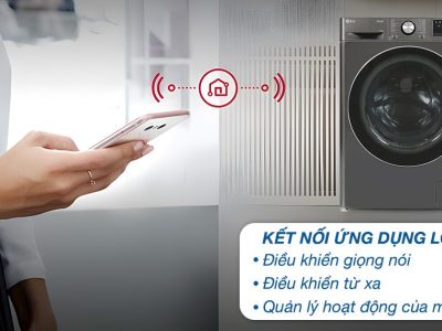 – Điều khiển máy giặt từ xa qua ứng dụng LG ThinQ: mẫu máy giặt LG Inverter này thông qua kết nối Wifi, ứng dụng LG ThinQ được trang bị trên điện thoại, máy tính bảng,… cùng trợ lý ảo Google Assistant và Alexa điều khiển thiết bị từ xa thuận lợi.