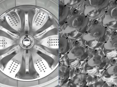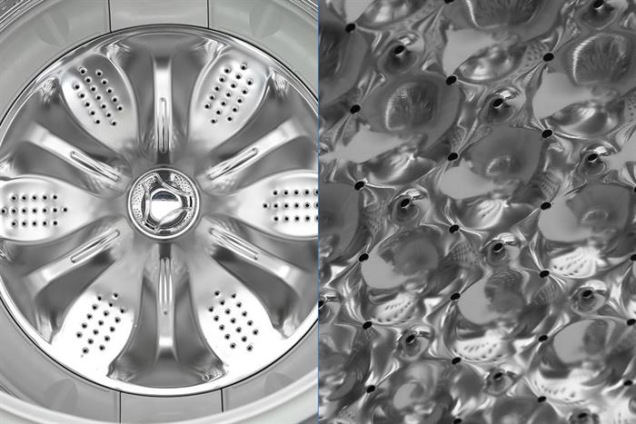 Lồng giặt kết hợp nhựa và thép không gỉ, bền bỉ, hạn chế bám cặn và dễ vệ sinh, đảm bảo độ bền lâu dài cho sản phẩm.
