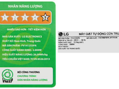 – Sản phẩm đạt 5 sao về nhãn năng lượng với hiệu suất sử dụng điện 26.09 Wh/kg.