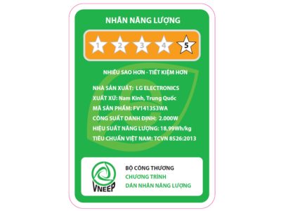 – Nhãn năng lượng chuẩn 5 sao, hiệu suất sử dụng điện là 18.99 Wh/kg.