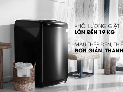 Máy giặt sở hữu khối lượng giặt lớn 19kg phù hợp với gia đình trên 6 người có nhu cầu giặt giũ cao.