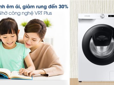 Máy giặt Samsung với công nghệ VRT Plus, thiết kế khung máy giặt có độ ổn định cao kết hợp với bộ cảm biến độ rung ồn sẽ giúp cho việc giặt giũ trở nên êm ái, giảm tiếng ồn tạo ra khi giặt đến 30%, kể cả khi máy đang vắt với tốc độ cao hoặc được nhét đầy quần áo.