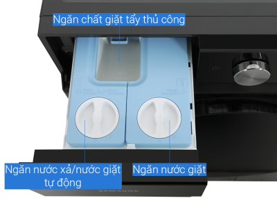 - Tự động phân bổ nước giặt xả theo khối lượng giặt và độ bẩn của quần áo.