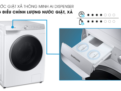 Tự động chiết rót chất giặt, xả phù hợp khối lượng quần áo với ngăn chứa thông minh AI Dispenser