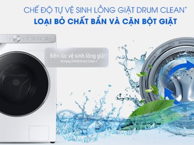 Sau một thời gian dùng (khoảng 40 lần) người dùng sẽ được thông báo nên vệ sinh lồng giặt. Với tính năng Drum Clean+ các cặn bám ở cửa và lồng giặt, vi khuẩn gây mùi trong lồng giặt sẽ bị loại bỏ hiệu quả.