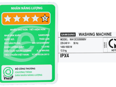 - Khối lượng giặt tối đa 12 kg sử dụng cho các gia đình trên 7 thành viên.