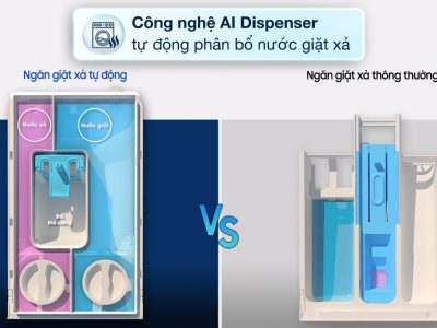 – Ngăn chứa nước giặt xả AI Dispenser: Với 1 lần đổ vào ngăn chứa, máy giặt có thể tự động cân chỉnh nước giặt xả sử dụng lên đến 1 tháng (nếu giặt máy khoảng 4 lần/tuần). Việc cân chỉnh lượng nước giặt xả được tiến hành chính xác sao cho phù hợp với độ bẩn và khối lượng quần áo trong suốt quá trình giặt.