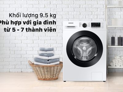 Ngoài ra, máy giặt Samsung với khối lượng giặt 9.5 kg giúp bạn an tâm trong việc, đáp ứng nhu cầu giặt lượng quần áo lớn của gia đình từ 5 – 7 thành viên.