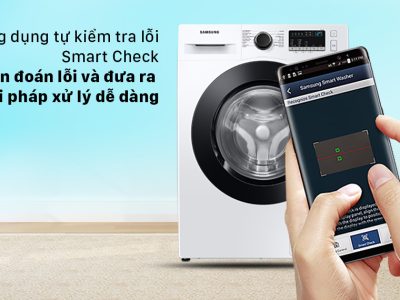 Tính năng Smart Check giúp người dùng có thể nhanh chóng biết được máy giặt của mình đang mắc phải lỗi gì thông qua điện thoại smartphone và dễ dàng khắc phục những lỗi như: nắp máy giặt không kín, đường nước vào bị rò rỉ,… mà không cần đến nhân viên bảo hành.