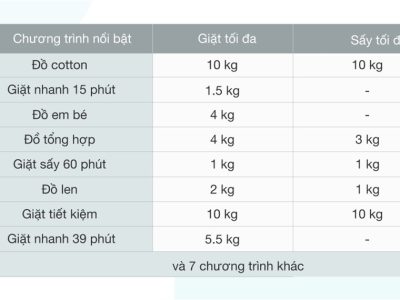 Khối lượng giặt 10 Kg, sấy 7 Kg phù hợp cho gia đình từ 5 – 7 thành viên