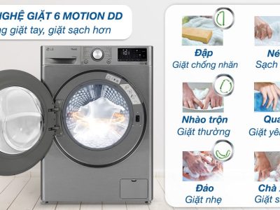 – Công nghệ giặt 6 Motion DD: tổng hợp 6 kiểu chuyển động mô phỏng các thao tác giặt tay của người gồm nhào trộn, chà xát, nén, quay, đảo, đập để làm sạch tốt hơn và hạn chế tình trạng xoắn rối.