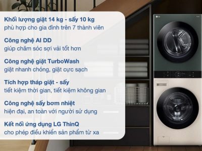 Máy giặt sấy LG WashTower Inverter giặt 14 kg – sấy 10 kg WT1410NHEG