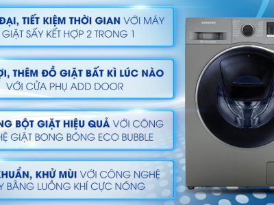 Samsung WD95K5410OX/SV không chỉ có chức năng giặt thông thường mà còn được tích hợp thêm tính năng sấy với khối lượng quần áo đến 6 kg, giúp cho quần áo được khô nhanh cũng như tiết kiệm được khoản chi phí về việc mua thêm máy sấy.