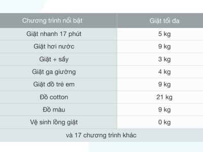 Khối lượng giặt khủng lên đến 21 kg, sấy 12 kg thoải mái giặt, sấy mùng mền, số lượng lớn quần áo cho những gia đình có trên 7 thành viên hoặc các hoạt động kinh doanh như: khách sạn, giặt ủi, nhà máy,…