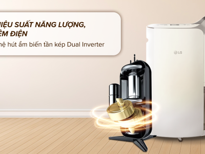 Mẫu máy hút ẩm LG này sử dụng công nghệ hút ẩm biến tần kép Dual Inverter. Với công nghệ này, máy nén kép cần ít thời gian để chạy hơn và nhờ đó sẽ tăng hiệu suất hoạt động mà vẫn tiết kiệm điện.