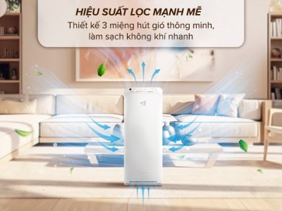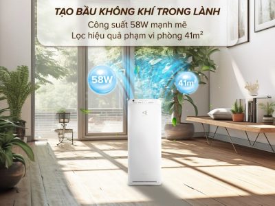 – Công suất hoạt động từ 7 – 58W, đáp ứng nhu cầu lọc trong không gian khoảng 41 m².