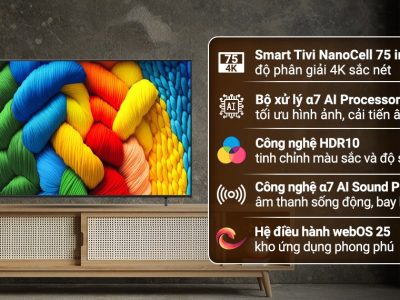 - Công nghệ âm thanhα7 AI Sound Pro (Virtual 9.1.2 Up-mix) Clear Voice Pro Tổng công suất 20W, 2.0 Kênh