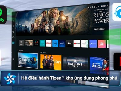 Smart tivi sử dụng hệ điều hành Tizen™ đa nhiệm, giao diện thiết kế hiện đại, có nhiều phân mục cho bạn dễ dàng truy cập và tìm thấy nội dung yêu thích mà không tốn nhiều thời gian tìm kiếm.