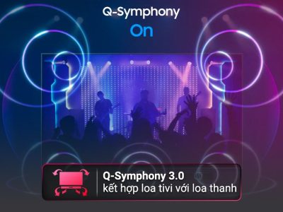 – Q-Symphony giúp bạn cảm nhận được sự hùng hồn của bản nhạc thính phòng ngay tại nhà của mình bằng cách đồng bộ loa thanh với loa tivi cho công suất loa mạnh mẽ hơn.