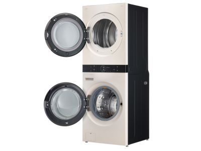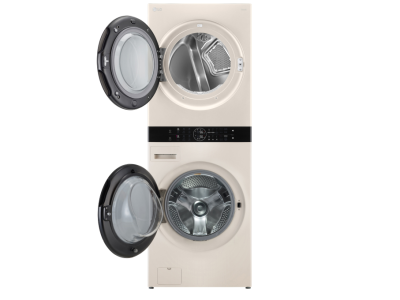 – LG WashTower WT1410NHE có kiểu dáng máy giặt lồng ngang – cửa trước, mang vẻ ngoài tinh tế, tông màu be thanh lịch, kích thước nhỏ gọn, đặt vừa vặn vào cả những không gian hẹp.