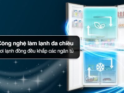 – Công nghệ làm lạnh đa chiều giúp các luồng khí lạnh được lan tỏa đều bên trong ngăn tủ, giúp thực phẩm được làm lạnh một cách toàn điện và giảm thiểu tình trạng ôi thiu do không đủ độ lạnh.