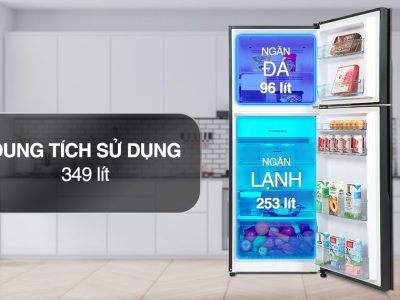 – Dung tích sử dụng: 349 lít, phù hợp cho nhu cầu bảo quản thực phẩm của các gia đình có từ 3 – 4 thành viên hoặc có ít thành viên hơn nhưng nhu cầu lưu trữ nhiều thực phẩm.