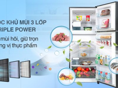 Bộ lọc khử mùi 3 lớp Triple Power giúp tủ lạnh loại bỏ vi khuẩn và các tác nhân gây mùi như: Mùi hành/tỏi, mùi cá sống, mùi giấm,… trả lại bầu không khí tủ mát lành, an toàn bảo quản thực phẩm.