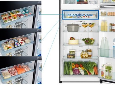 – Thiết kế có ngăn chuyển đổi đa năng Selectable Zone dùng đựng thực phẩm cần đông mềm, ngăn rau củ quả để chứa các loại rau củ, trái cây, kệ để đựng thực phẩm chín/sống, bên phía cánh cửa tủ có khay chứa để đựng đồ uống, gia vị, trứng,…