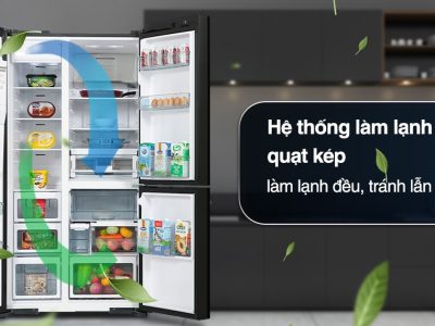 – Hệ thống làm lạnh quạt kép: Làm lạnh riêng biệt và hiệu quả cho ngăn đá và ngăn lạnh, giúp tạo nên luồng khí lạnh đồng đều, nhanh chóng, tăng cường hiệu quả bảo quản thực phẩm.