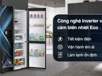 – Cảm biến nhiệt Eco: Trên ngăn đá và ngăn lạnh được trang bị cảm biến độc lập giúp duy trì mức nhiệt phù hợp cho từng ngăn trong mọi thời điểm, cho thực phẩm luôn tươi ngon.