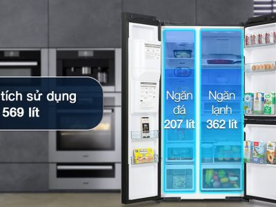 – Dung tích sử dụng 569 lít, lựa chọn phù hợp dành cho các hộ gia đình có trên 5 người, hoặc gia đình ít thành viên hơn nhưng có nhu cầu lưu trữ thực phẩm nhiều hoặc phục vụ cho nhu cầu kinh doanh.
