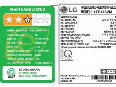 | Công suất tủ lạnh: | 280W (công suất danh định) |