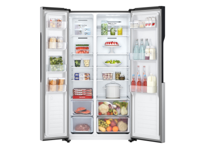 – Dòng tủ lạnh side by side, chất liệu cửa tủ được làm từ thép không gỉ bền chắc với màu xám tinh tế, hòa hợp với mọi không gian nội thất.