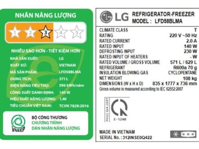 | Công suất tủ lạnh: | 140W (công suất danh định) |