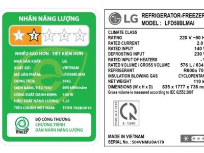 – Dung tích sử dụng 576 lít (400 lít ngăn lạnh – 176 lít ngăn đá), phù hợp cho gia đình từ 5 người trở lên.