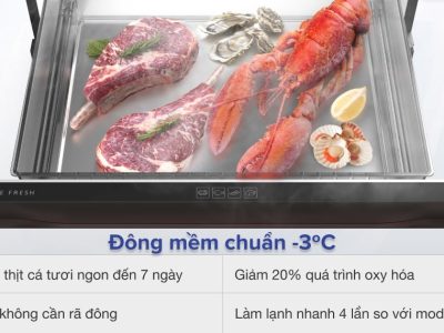 Được thiết kế riêng biệt nên dễ dàng lấy thực phẩm khi cần. Ngoài ra, với nhiệt độ -3 độ C giúp bảo quản thực phẩm không cần rã đông và giữ chúng tươi ngon lên đến 7 ngày.
