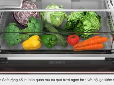 Ngăn rau được thiết kế dạng kéo khép kín, kích thước lớn có thể trữ được các loại rau củ như bắp cải, dưa hấu,… với độ ẩm và nhiệt độ tối ưu giúp chúng tươi ngon.