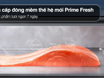– Ngăn cấp đông mềm thế hệ mới Prime Fresh+ bảo quản thực phẩm ở chuẩn -3 °C nhanh gấp 4 lần, giảm 20% tình trạng oxi hóa vào bảo quản chúng tươi ngon lên đến 7 ngày mà không đóng tuyết giúp chế biến không cần rã đông.