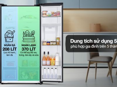 - Kiểu tủ Side by Side với dung tích 578 lít, thích hợp gia đình trên 5 thành viên.