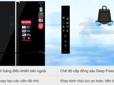 Mẫu tủ lạnh nhiều cửa Sharp còn sử dụng hệ thống làm lạnh kép Hybrid Cooling giúp hơi lạnh tỏa đều đến mọi ngóc ngách bên trong ngăn tủ, đồng thời hạn chế tình trạng lẫn mùi giữa các ngăn và góp phần mang lại tiết kiệm điện tối ưu.