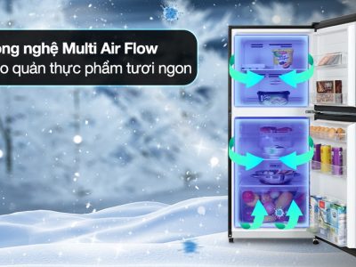 – Công nghệ Multi Air Flow: luân chuyển, phân bổ luồng hơi lạnh trải rộng đến mọi ngóc ngách để thực phẩm được làm lạnh toàn diện, hạn chế tình trạng làm lạnh không đồng đều, nâng cao hiệu quả bảo quản thực phẩm.