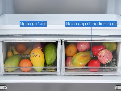 Nhờ ngăn Moisture Zone người dùng có thể lựa chọn 1 trong 2 chế độ bảo quản là Fruits (Trái cây) và Vegetables (Rau củ) giúp tạo ra hơi ẩm phù hợp. Từ đó, thực phẩm lưu trữ sẽ nên tươi ngon và kéo dài thời gian bảo quản hơn.
