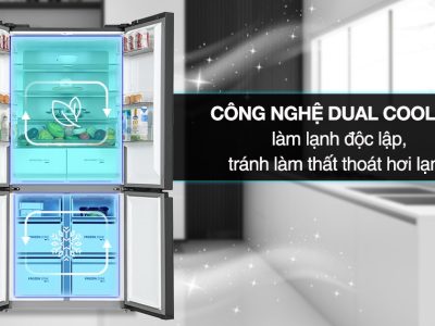 – Kiểu dáng tủ lạnh multidoor 4 cửa với cửa kính 4 lớp – vân dệt Nhật Bản sang trọng đẳng cấp.