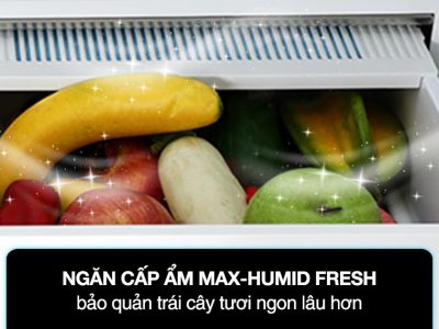 – Ngăn cấp ẩm tối đa Max-humid Fresh đảm bảo duy trì độ ẩm đến 90% với lớp màng có khả năng lưu lại những hạt sương ẩm li ti để ngăn tủ luôn duy trì ổn định độ ẩm, đồng thời ngăn chặn sức gió thổi trực tiếp để thực phẩm luôn tươi ngon và duy trì dưỡng chất.
