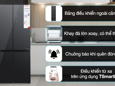 – Đa dạng tiện ích được tích hợp trên tủ lạnh: Bảng điều khiển cảm ứng bên ngoài, chuông báo khi quên đóng cửa, ứng dụng kết nối điều khiển thông minh TSmartLife,…